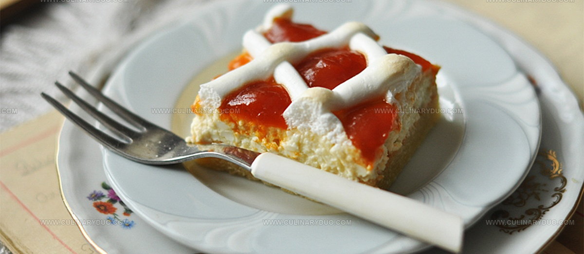 Rakoczi turos stands as a beloved Hungarian dessert featuring a delicate shortcrust pastry base layered with sweet curd cheese and crowned with a light, airy meringue.