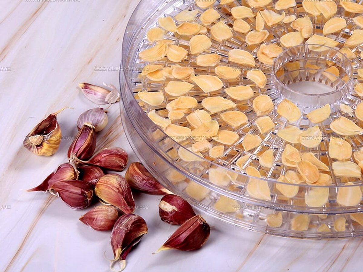 The process to make garlic powder involves peeling fresh garlic cloves, slicing them thinly, then drying them thoroughly, often using food dehydrators or ovens, to remove moisture. After drying, the garlic is ground into a fine powder.