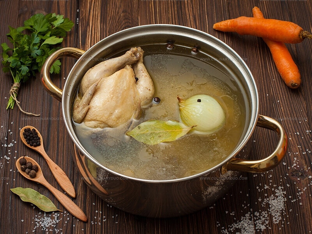 Chicken broth is a savory liquid made by simmering chicken meat, bones, and sometimes vegetables in water until the flavors blend together, creating a comforting base for soups, stews, and sauces: