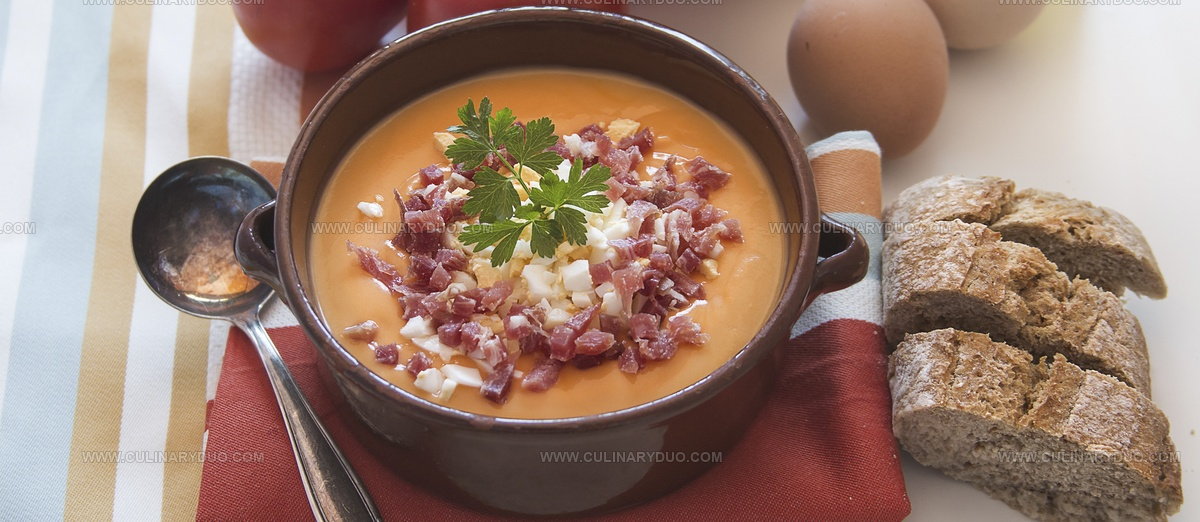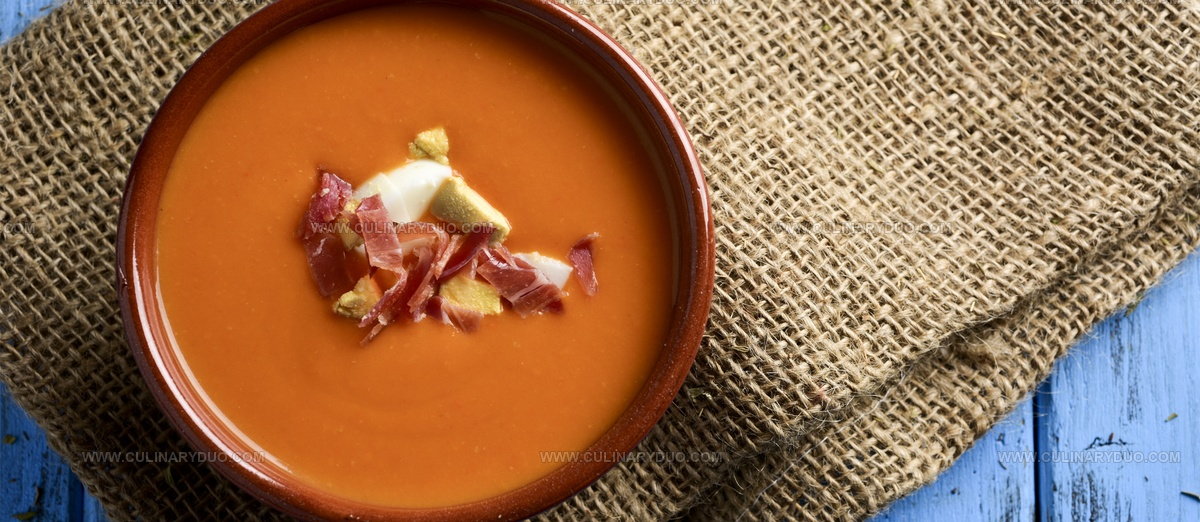 Spanish home cooks traditionally serve this refreshing Andalusian dish chilled and topped with chopped hard-boiled eggs and crispy jamón ibérico.