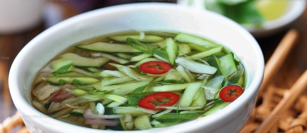 Mustard and vinegar seasonings add sharp, bright notes that enhance the broth's coolness.