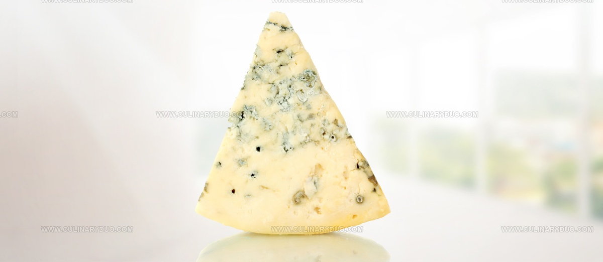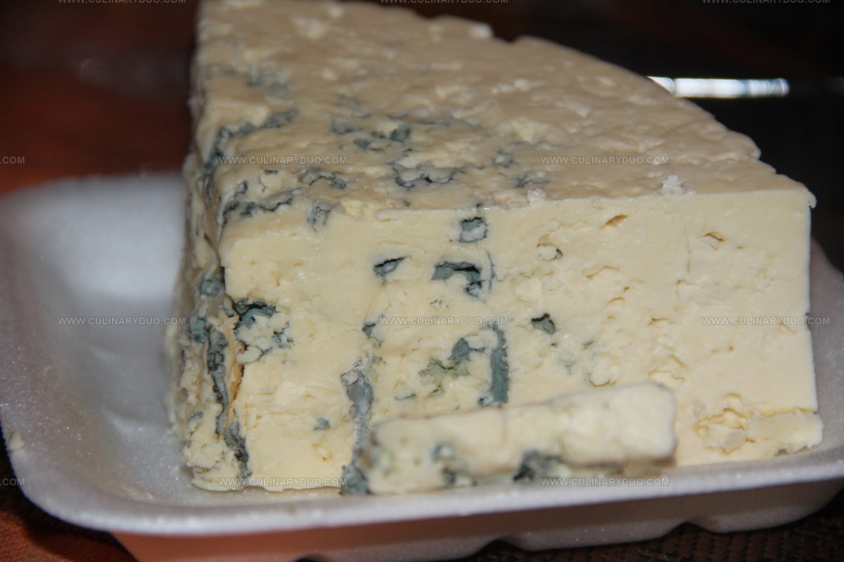 Aged for at least two months in cellars, this cheese develops a creamy, crumbly texture with ivory coloring and blue-gray veins.