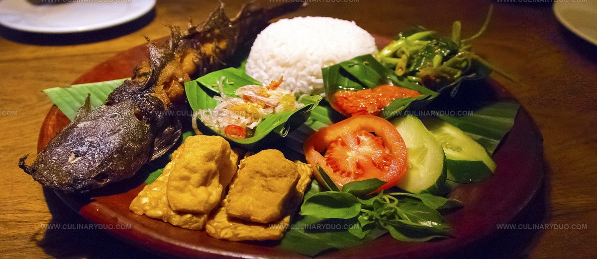 Javanese communities cherish this affordable protein-packed meal served with fresh vegetables like cucumbers, string beans, and cabbage.