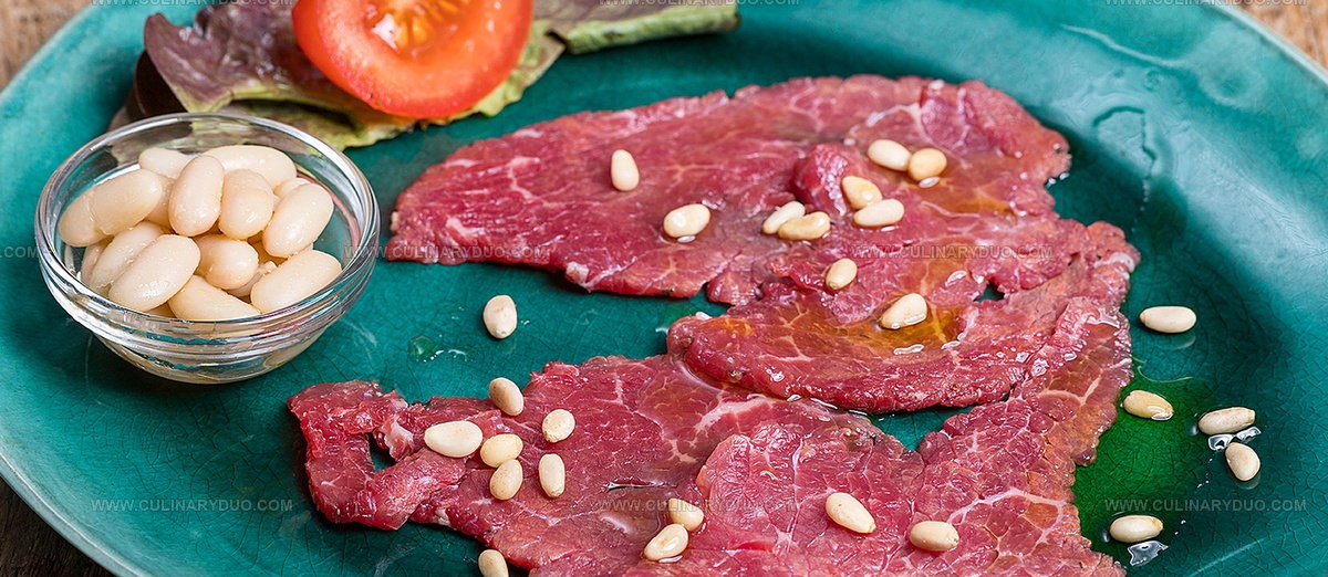 Traditional preparation involves seasoning beef rump with salt, pepper, juniper berries, rosemary, crushed garlic, and bay leaves during an aging period of at least two weeks.