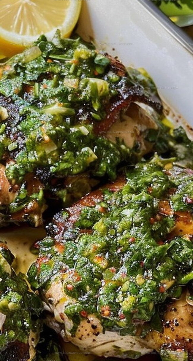 - Plate the chicken and generously drizzle with vibrant, herbaceous chimichurri sauce for a burst of fresh, zesty flavor.