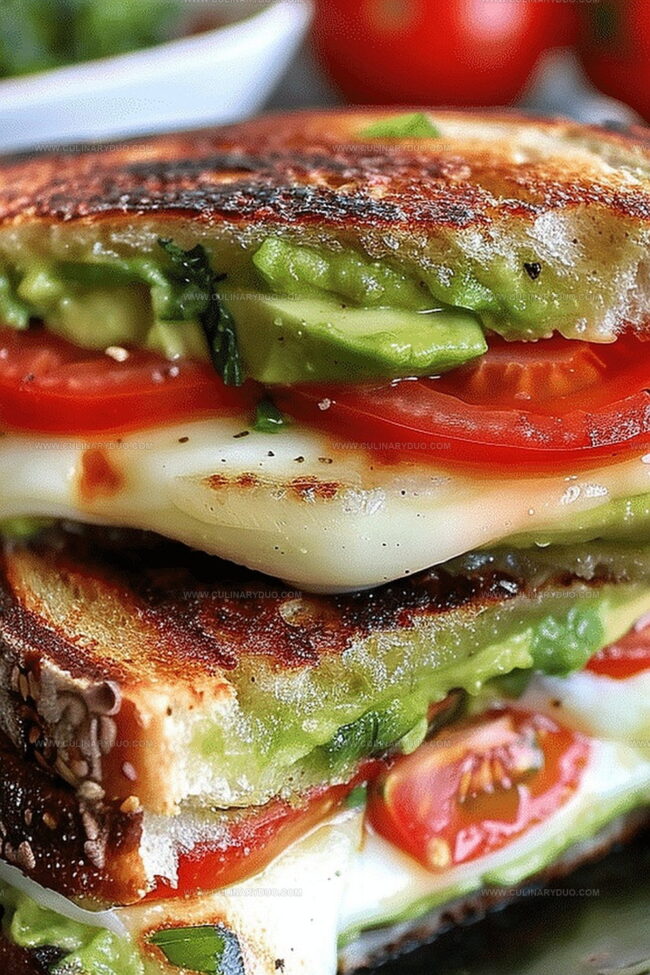 Melted mozzarella embraces crisp avocado slices in a grilled cheese sandwich that challenges everything you know about comfort food.