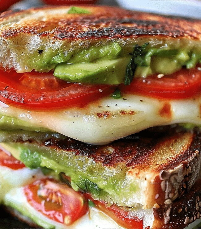 Creamy avocado, mozzarella, and tomato grilled cheese elevates classic comfort food with Mediterranean-inspired flavors. Melted cheese, ripe avocado, and juicy tomatoes create a gourmet sandwich you’ll crave for lunch or dinner.