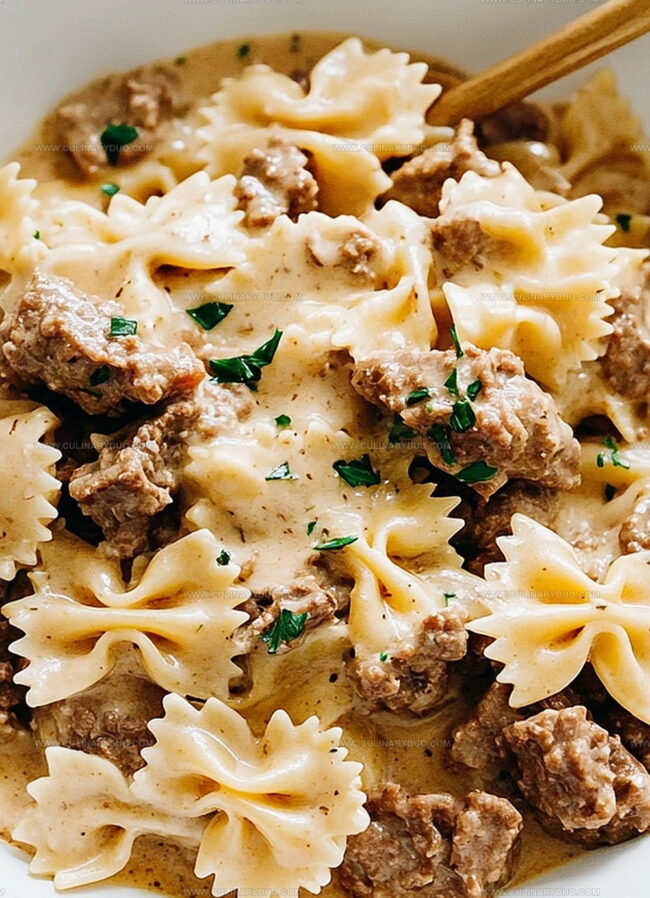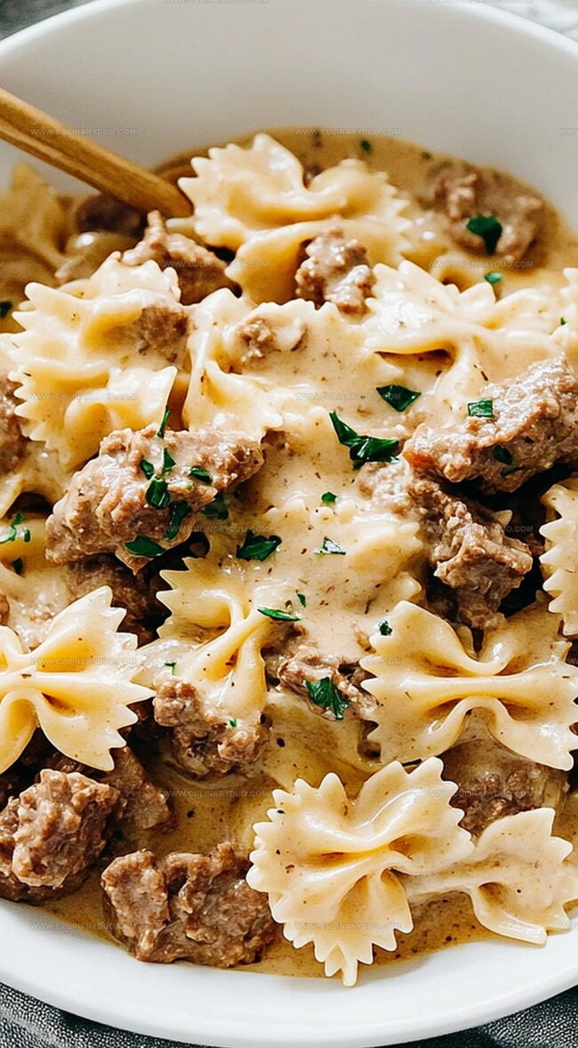 Creamy beef and bowtie pasta creates a comforting Italian-inspired meal perfect for family dinners. Hearty ground beef and tender pasta blend seamlessly with rich alfredo sauce, delivering a satisfying culinary experience you’ll crave again and again.