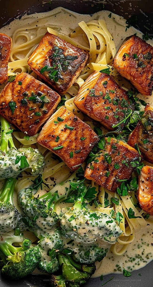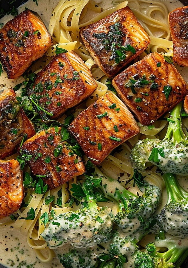 Main Protein:Pasta Base:Vegetable Components:Dairy and Cream Elements:Seasoning and Flavor Enhancers:Cooking Liquids and Fats:Cooking Steps For Salmon Broccoli Alfredo