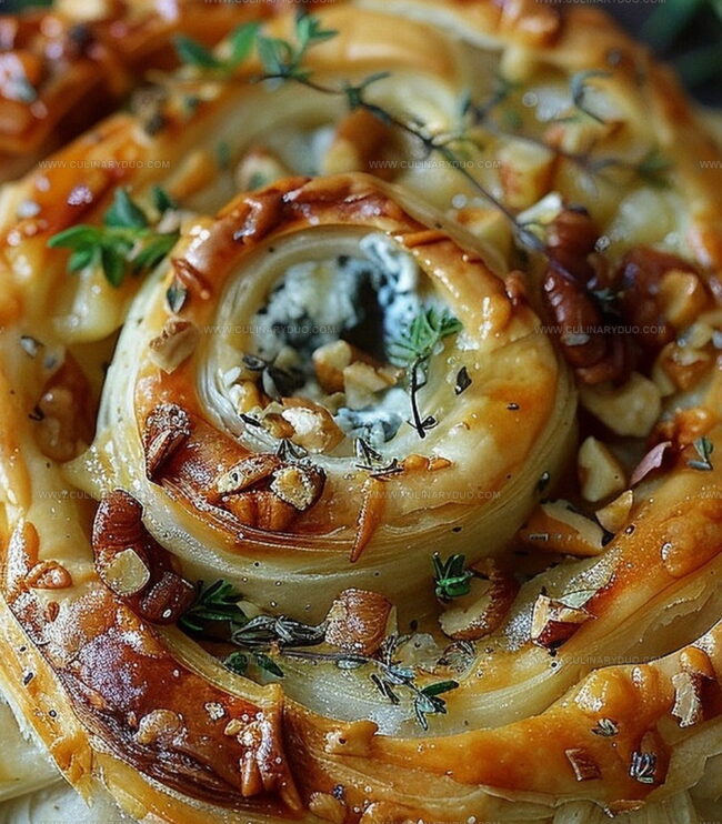 Indulgent blue cheese, walnut and thyme pull apart puff pastry twirl brings Mediterranean charm to your table with elegant layers of flavor. Crisp pastry, crumbled cheese, and fragrant herbs create a sophisticated appetizer perfect for sharing with friends.