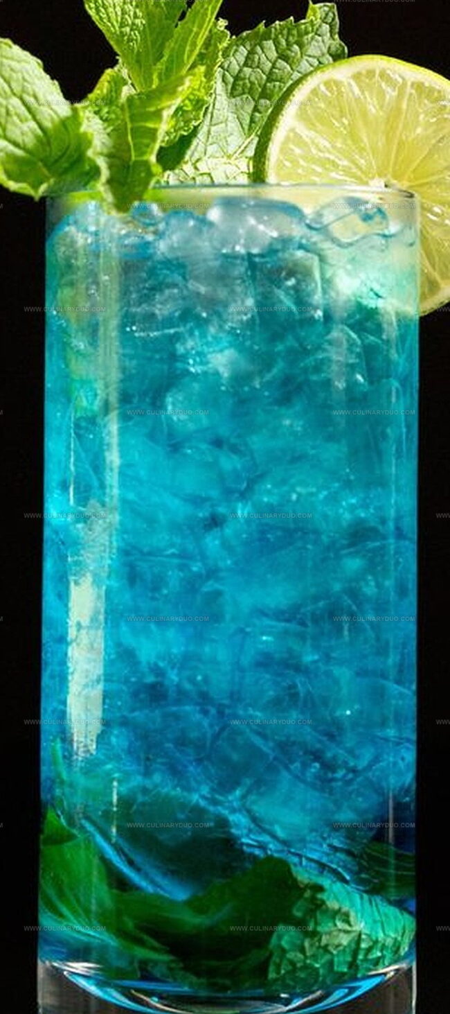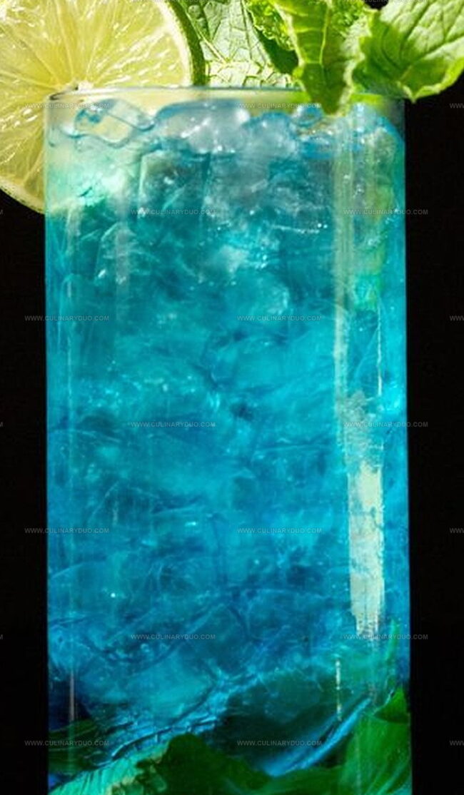 This vibrant cocktail blends classic mojito ingredients with a stunning azure twist.