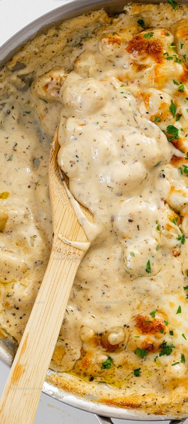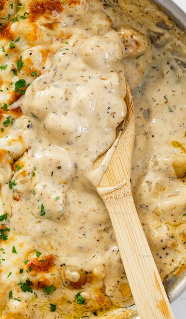 Soft gnocchi absorb the rich, velvety sauce, making each bite irresistibly smooth.