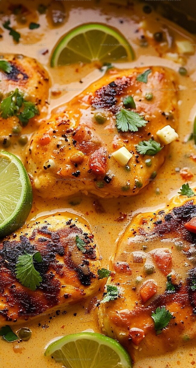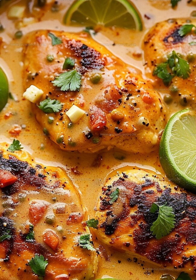 - Return seared chicken to skillet, coating thoroughly with sauce. Simmer for an additional 4 minutes to meld flavors. Garnish with lime wedges and fresh cilantro before serving immediately.