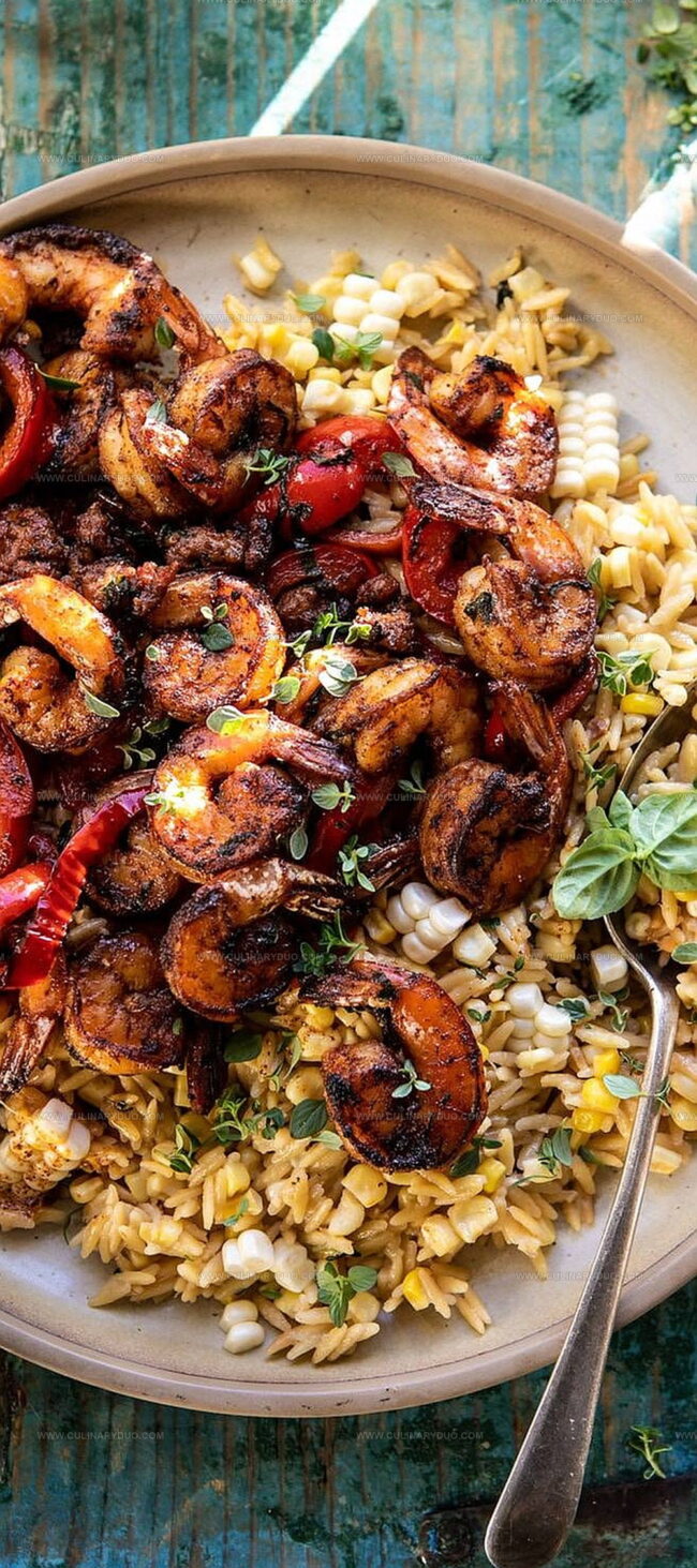 Cajun Pepper Shrimp with Creamed Corn Orzo Recipe