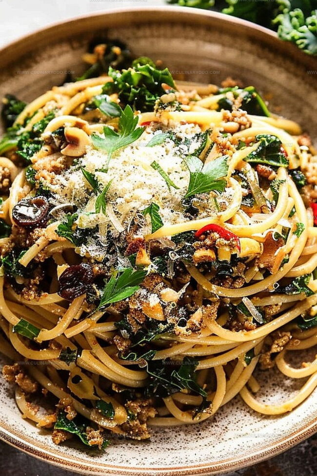 Hearty California walnut and kale bucatini brings rustic Italian comfort to your kitchen with rich, nutty flavors. Fresh ingredients merge seamlessly, offering you a nourishing pasta experience that satisfies both hunger and culinary curiosity.