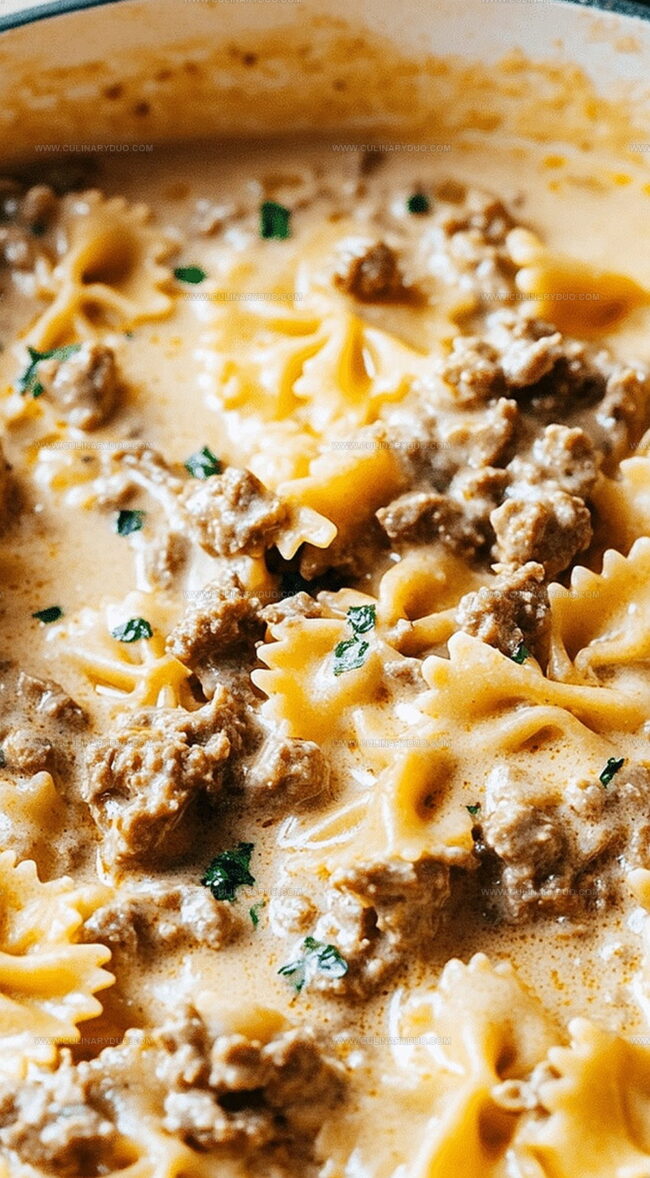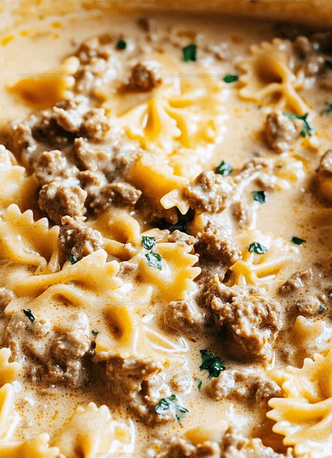 The Creamiest Cheesy Beef and Bowtie Pasta in Garlic Butter Recipe