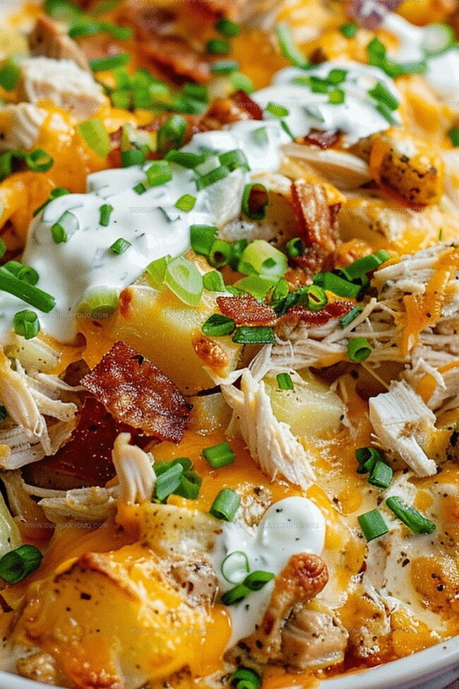 Comfort comes alive in this cheesy chicken potato casserole that promises warmth with every delightful bite.