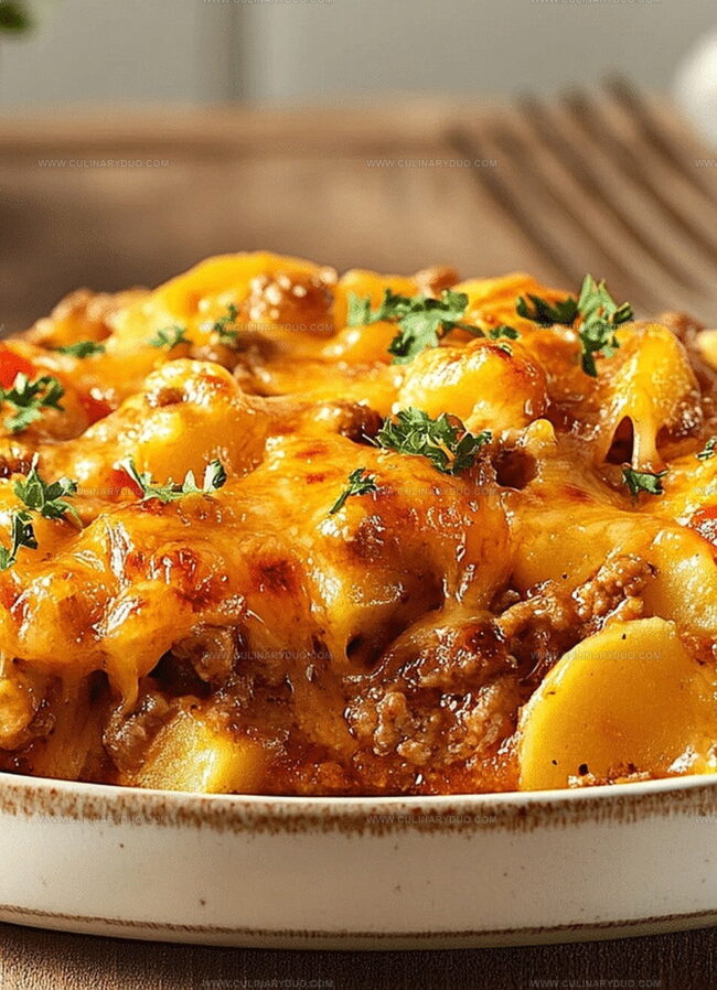 Hearty ground beef and potatoes casserole delivers comfort straight from grandma’s kitchen, blending savory meat with creamy potato layers. Rich cheese melts perfectly over this classic dish, promising a satisfying meal that brings families together around the dinner table.