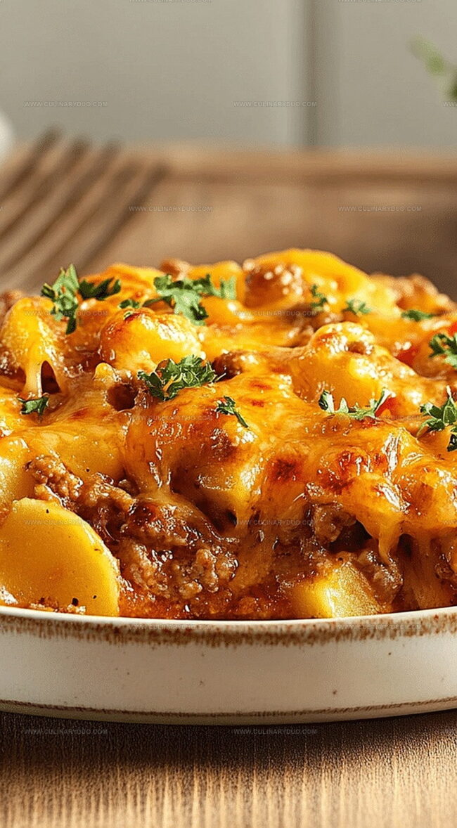 Tender potatoes and seasoned beef mingle under a blanket of melted cheese, creating irresistible layers of flavor.