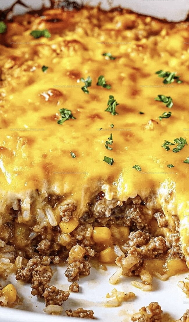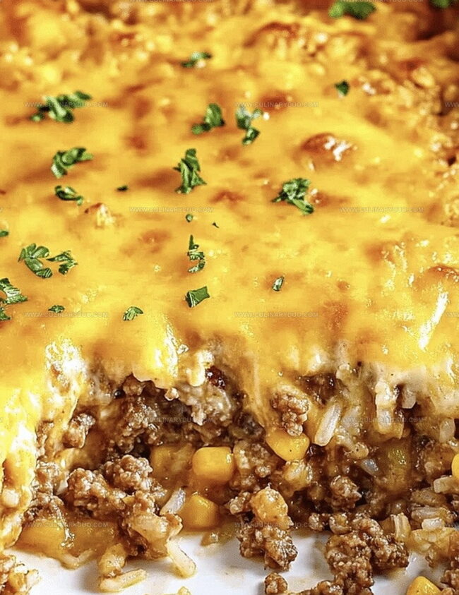 Warm comfort meets pure satisfaction in this cheesy ground beef and rice casserole, bringing hearty midwest flavors to your dinner table. Simple ingredients blend seamlessly, creating a crowd-pleasing meal that satisfies hunger and warms hearts.
