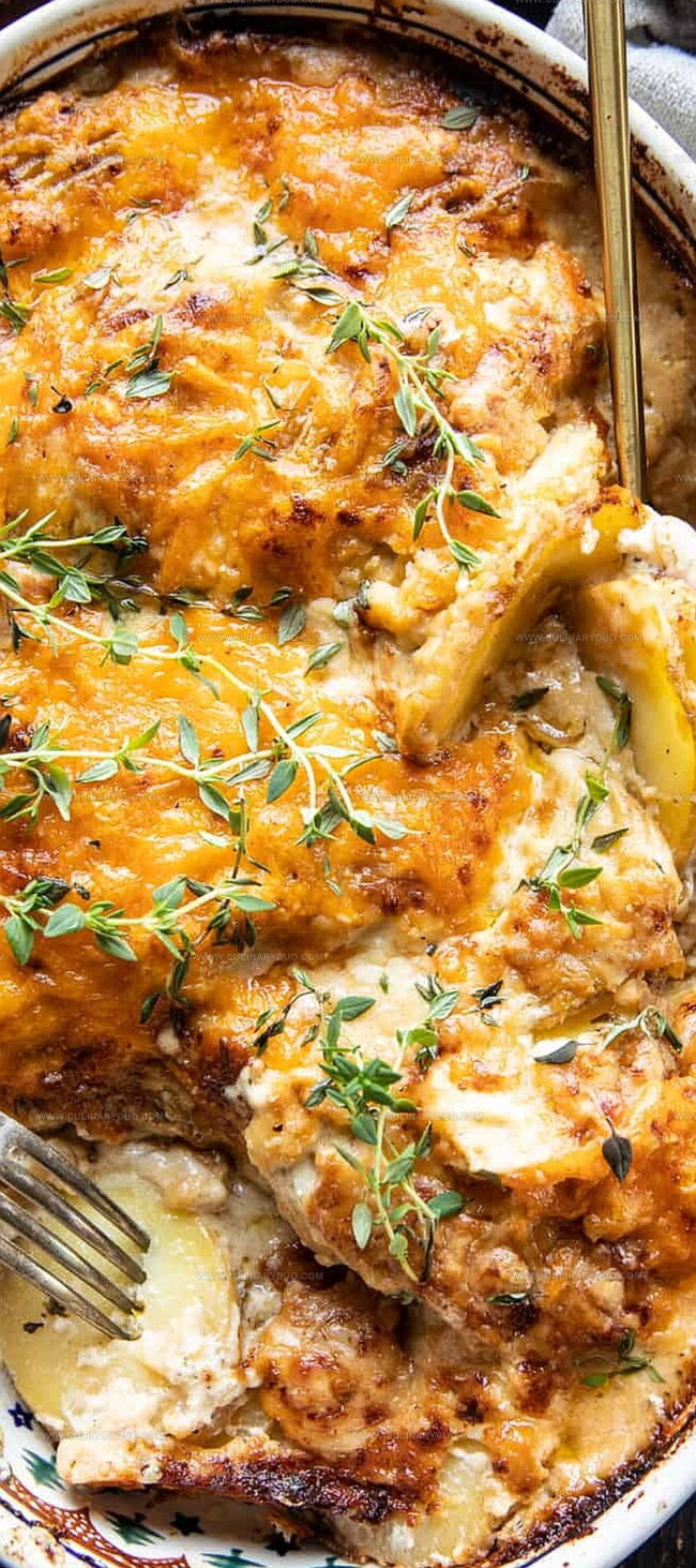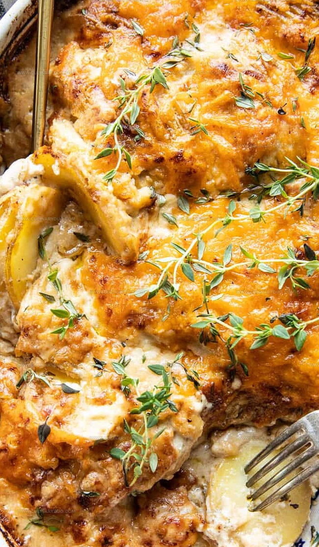 - For advance preparation, complete the dish up to the initial baking stage. Refrigerate for up to 4 days, carefully covering the casserole. When ready to serve, bring to room temperature, top with cheddar, and bake for 20-30 minutes until heated through and beautifully golden. Garnish with fresh thyme sprigs before presenting this decadent potato masterpiece.