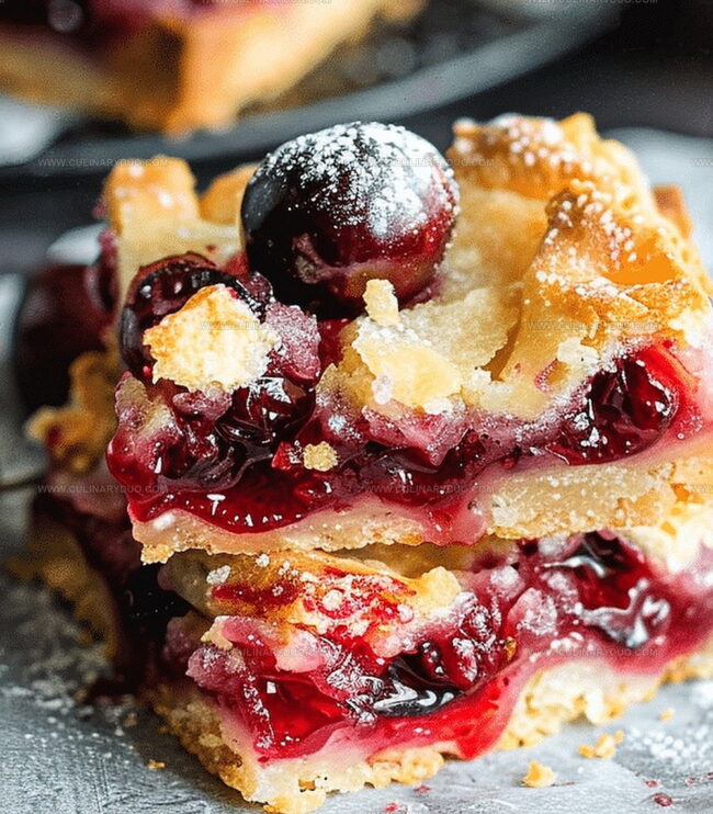 Sweet summer memories shine through these cherry pie bars, blending nostalgic homestyle baking with elegant dessert simplicity. Rich buttery crust and tangy cherry filling create a perfect balance that invites you to savor each delightful bite.