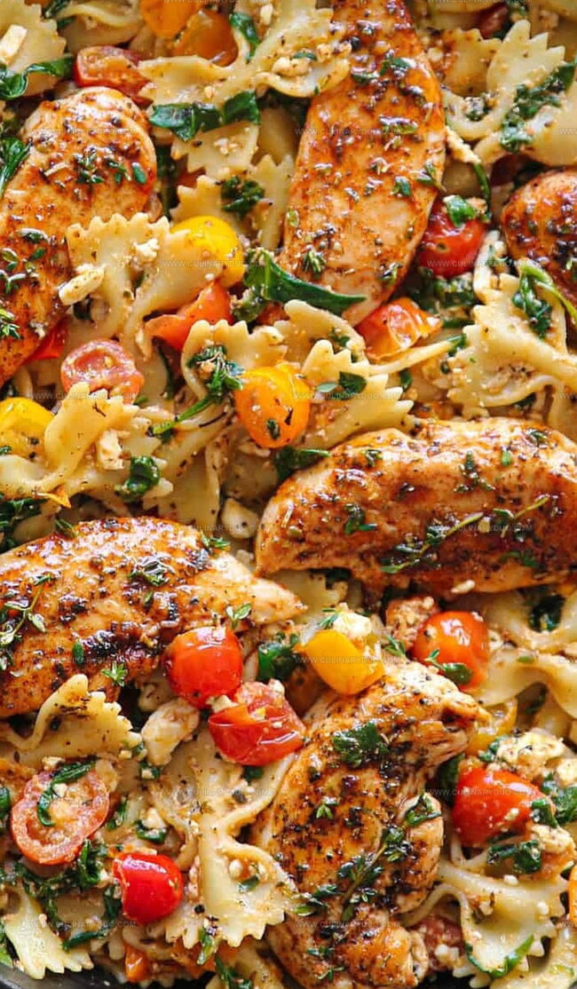 Chicken Feta Pasta Spinach Tomato Must-Trys