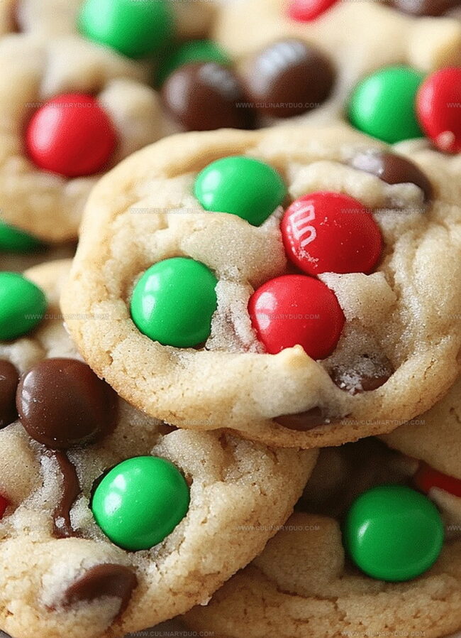 Festive Christmas M&M Cookies sparkle with holiday cheer, blending sweet chocolate chips and colorful candy pieces. Warm from the oven, these treats invite friends and family to enjoy delightful seasonal moments together.