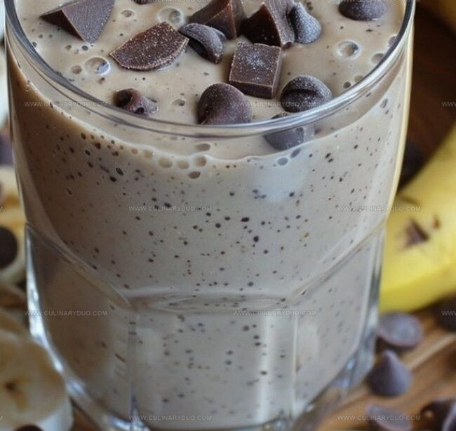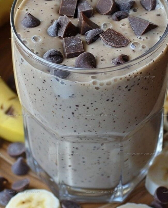 - Transfer smoothie immediately into chilled glasses, garnishing with optional banana slices or chocolate chips if desired.