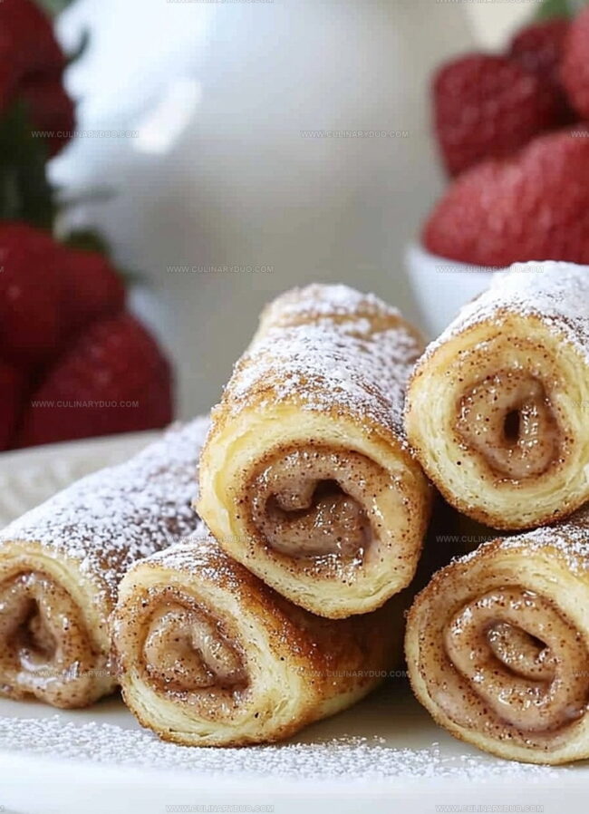 Cinnamon roll french toast roll-ups blend classic breakfast comfort with playful culinary creativity. Creamy, sweet filling wrapped in golden-brown toast promises a delightful morning treat you’ll savor with each delectable bite.