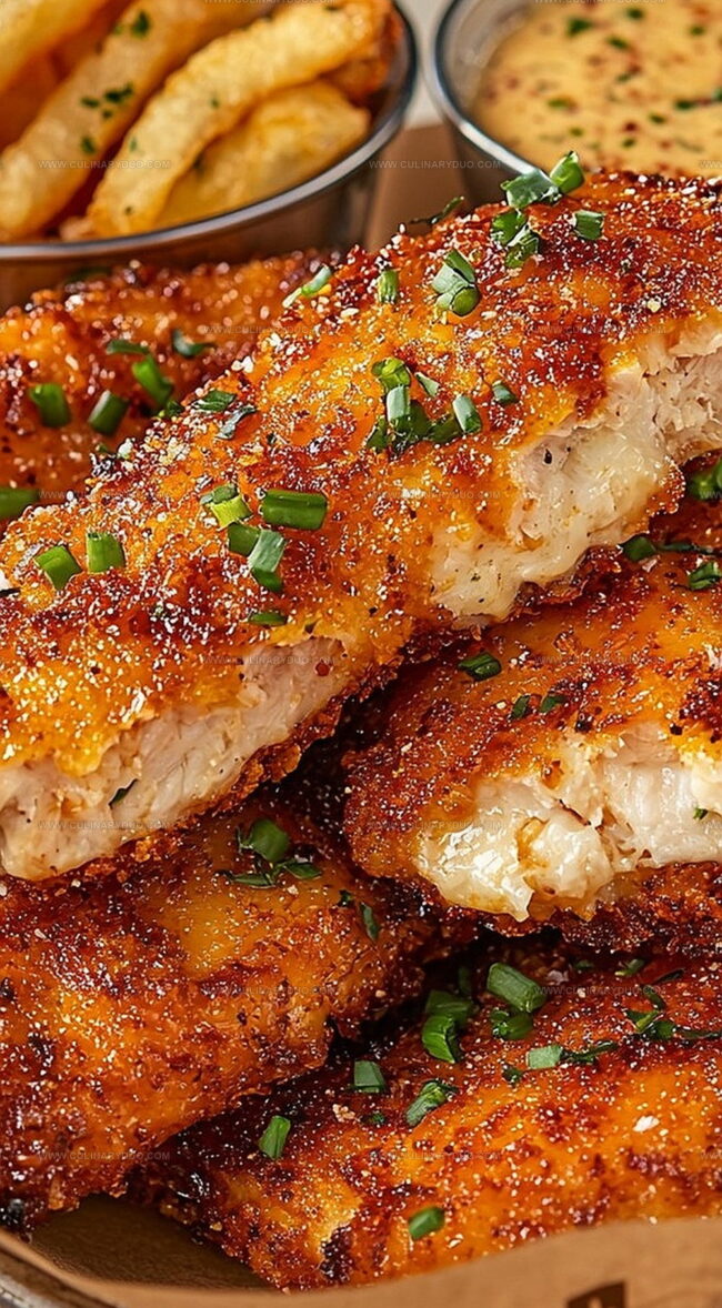 The tenders are ready when they turn a beautiful golden brown and reach an internal temperature of 165°F.