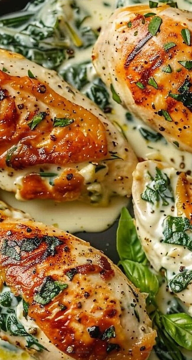 Tender chicken breasts hide a delightful cream cheese and spinach stuffing that bursts with flavor.