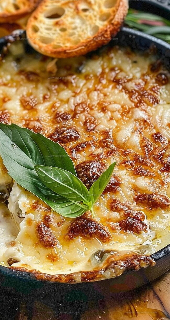 - Serve the warm, bubbling dip immediately alongside the toasted baguette slices for an elegant appetizer.