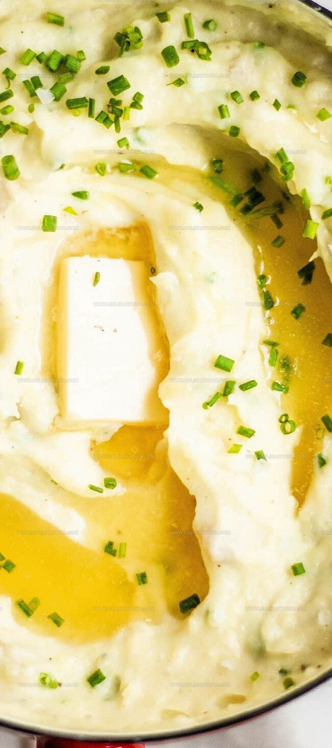 Avoid over-mixing or using a food processor. Gently mash with a hand mixer or potato masher to keep the texture light and fluffy.