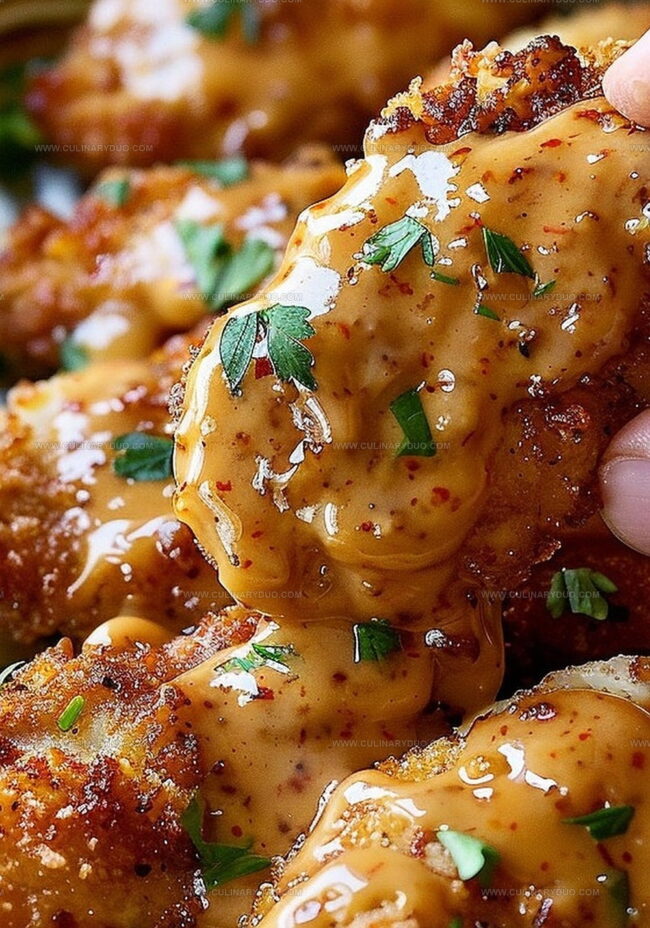 Tender chicken pieces get coated in a delightfully crunchy exterior that crackles with each mouthful.