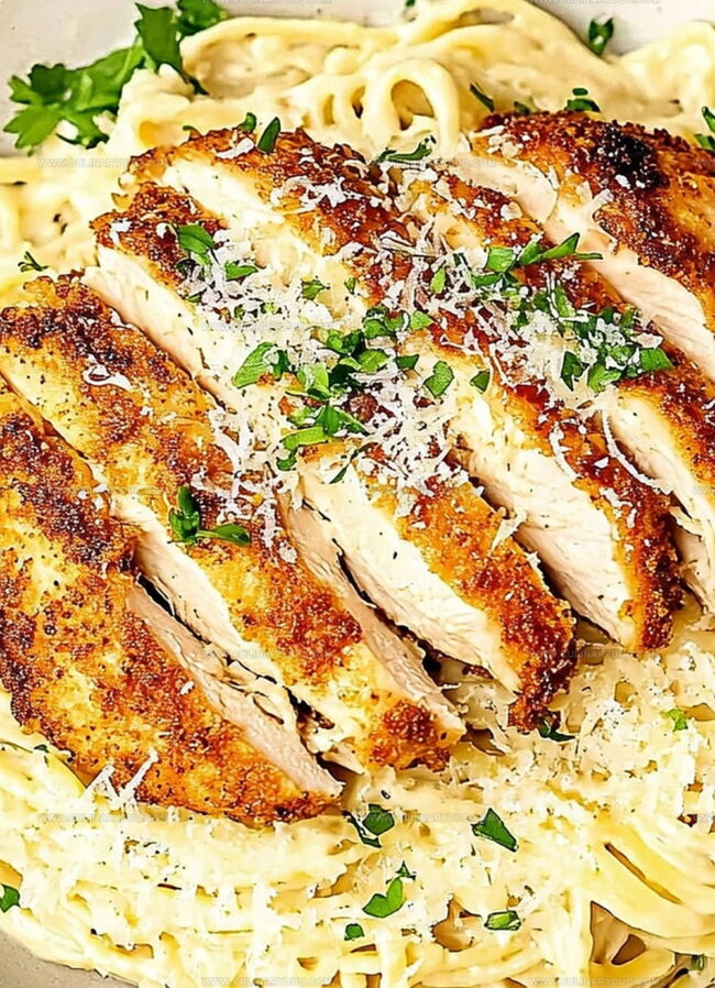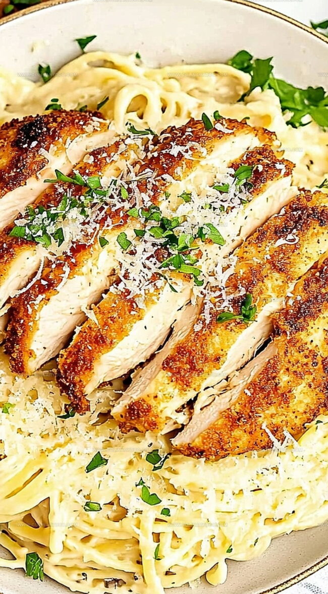Crispy chicken meets creamy pasta in this irresistible culinary masterpiece that blends Italian comfort with crunchy textures. Delicate noodles and golden-brown chicken create a perfect harmony you’ll crave again and again.