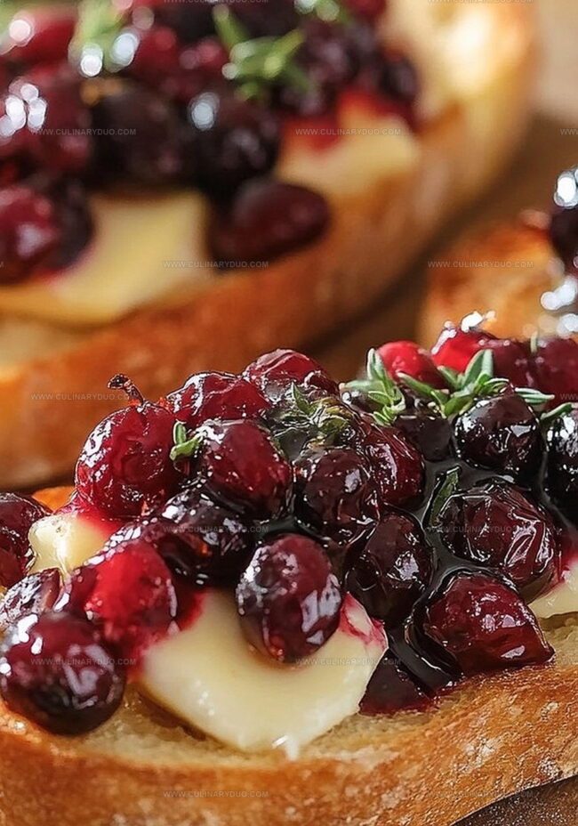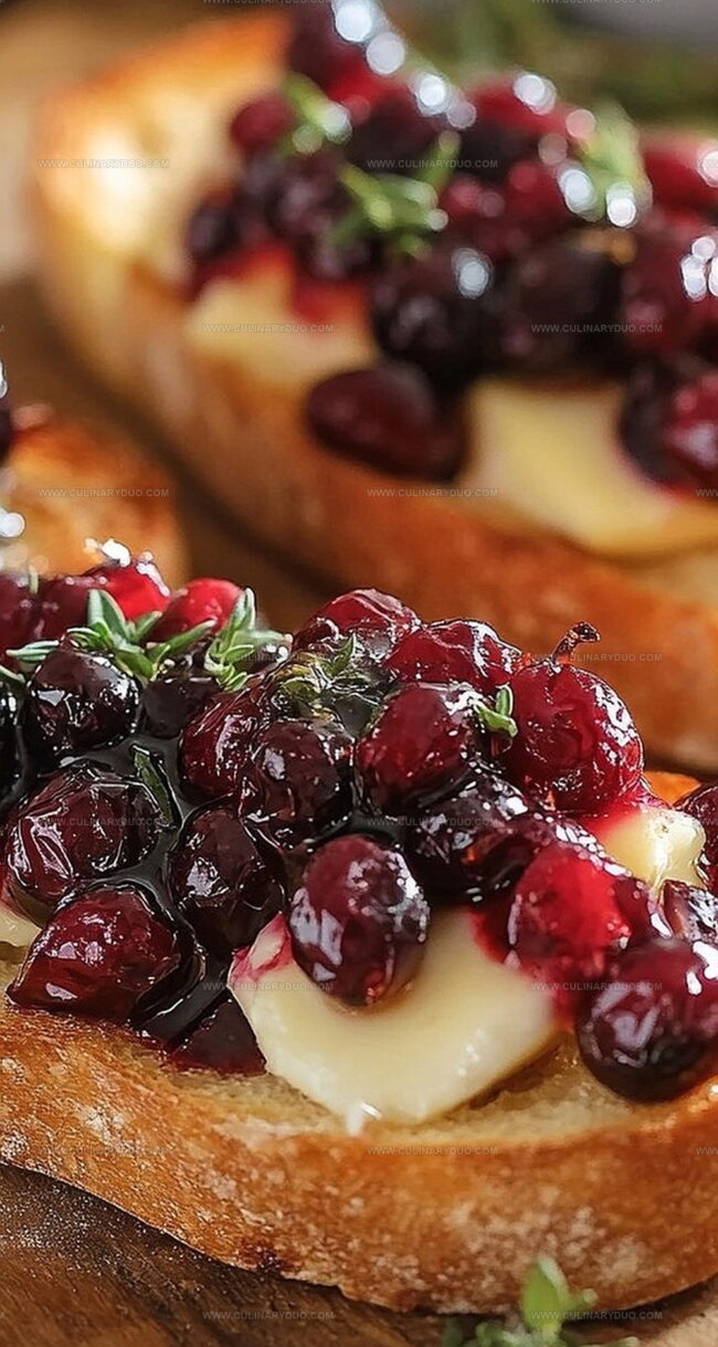 Savory crispy crostini with balsamic roasted cranberries and creamy brie delivers an elegant Italian-inspired appetizer perfect for holiday gatherings. Delicate crunch meets tangy sweetness, creating an irresistible flavor combination that will impress guests at first bite.