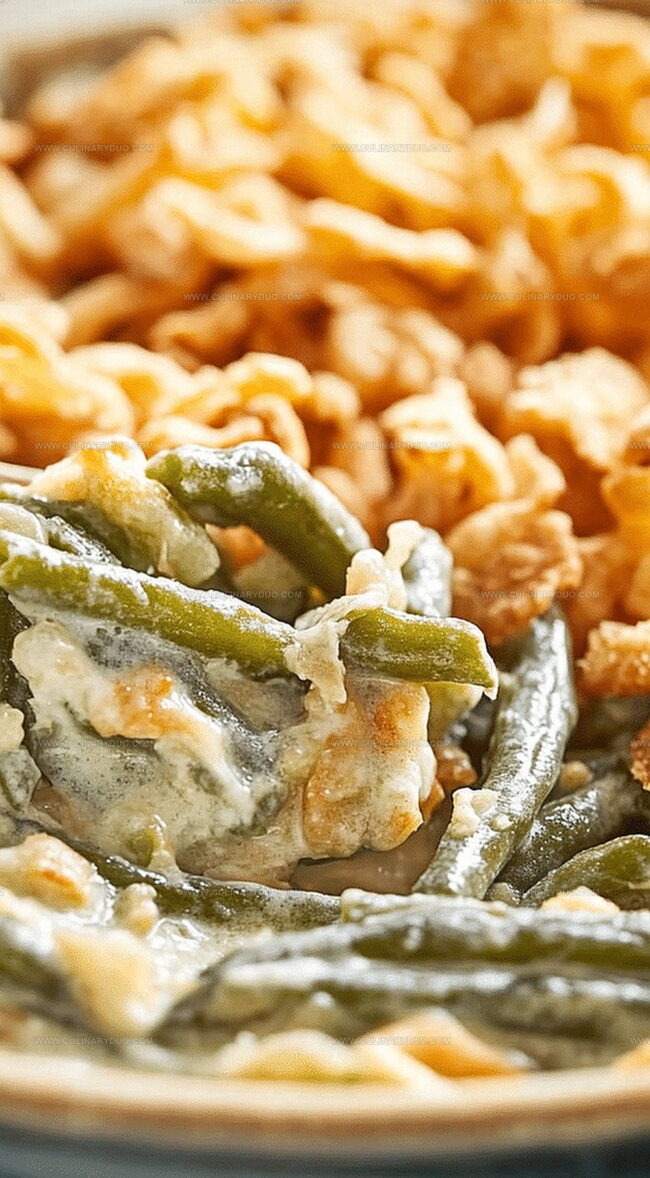Tender green beans mingle with creamy sauce and crispy onion toppings for a mouthwatering side dish.