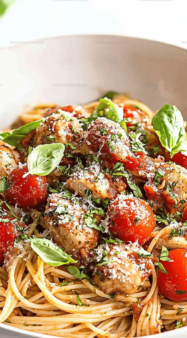Vibrant flavors dance across this bruschetta chicken pasta recipe, weaving together Mediterranean-inspired ingredients with pure comfort.