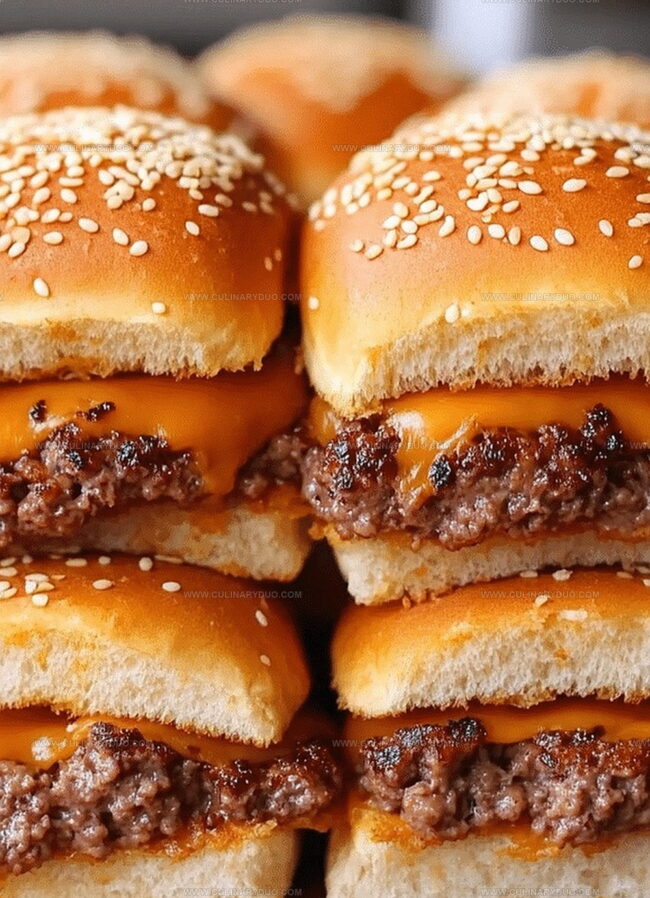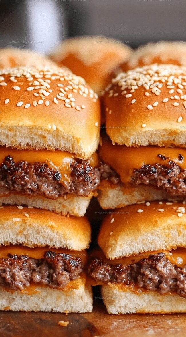 Mouthwatering cheeseburger sliders deliver classic American comfort in miniature form. Juicy beef patties nestled between mini buns create perfect bite-sized indulgence you’ll crave at every gathering.