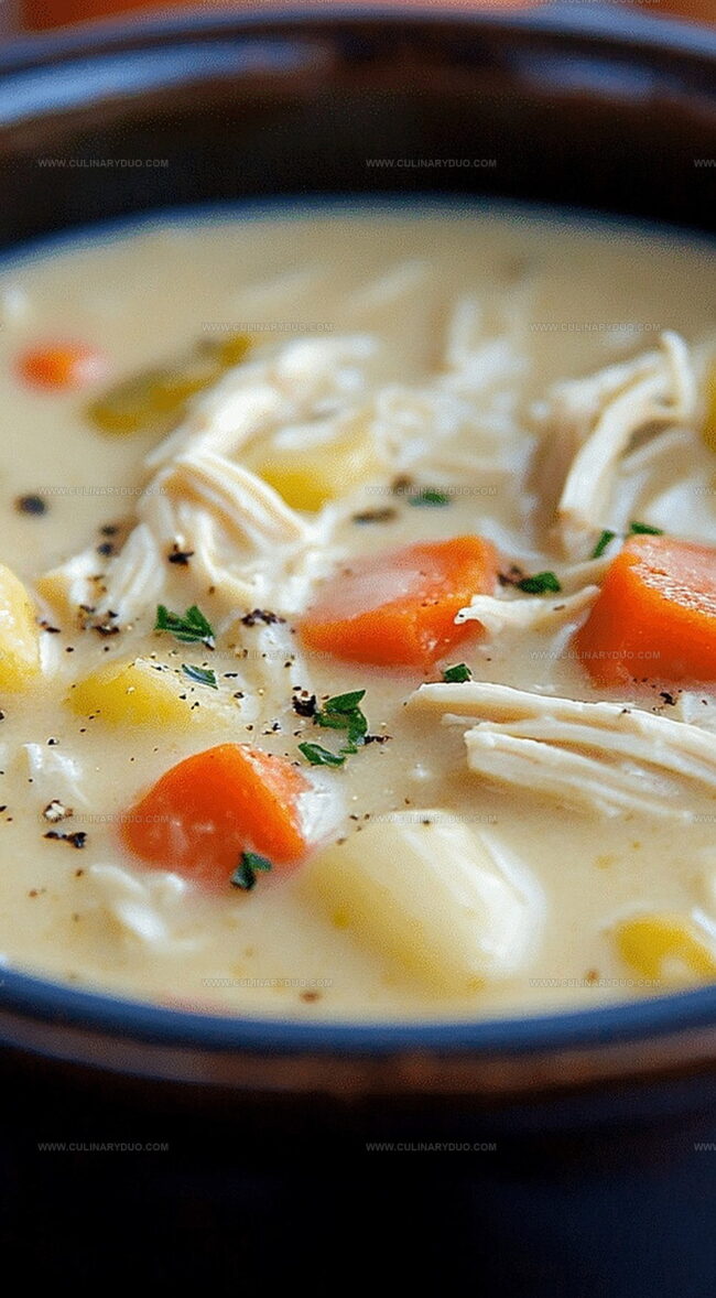 Comfort flows through every spoonful of this creamy chicken noodle soup that combines classic flavors with rich, velvety texture.