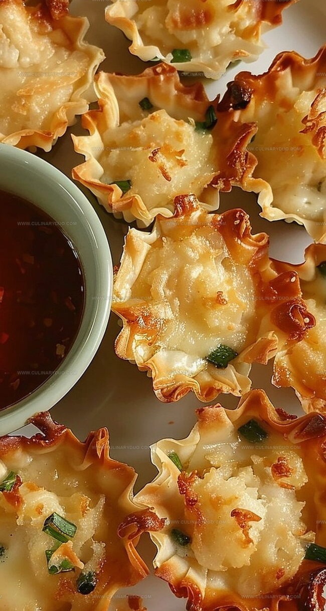 Present these elegant appetizers immediately, accompanied by tangy duck sauce and spicy Chinese hot mustard for an extra flavor punch that will delight your guests.