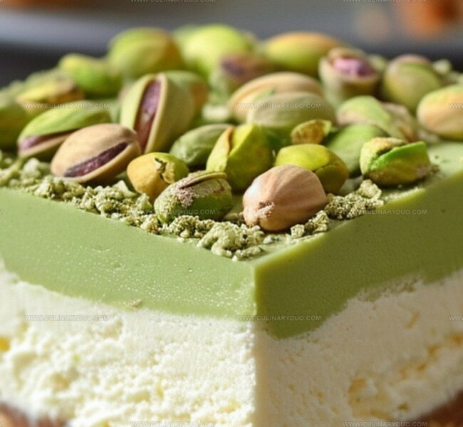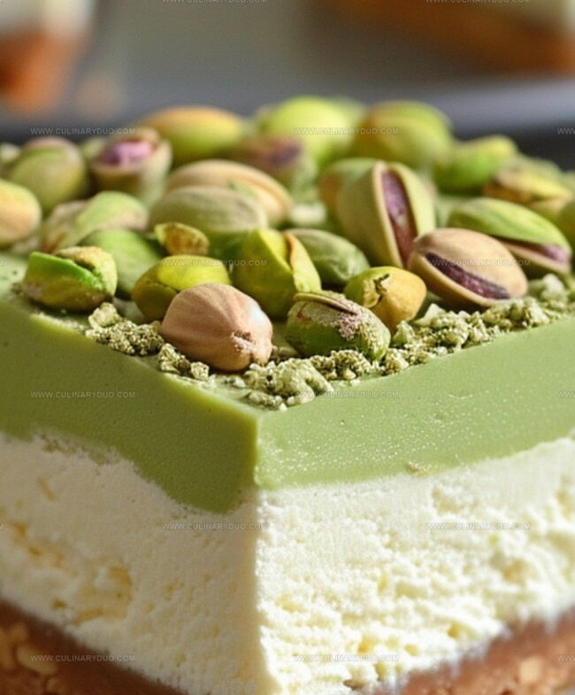Silky pistachio delight cheesecake bars blend Mediterranean elegance with creamy indulgence. Rich layers of nutty sweetness and smooth cream cheese create a luxurious dessert experience you’ll savor with each delectable bite.