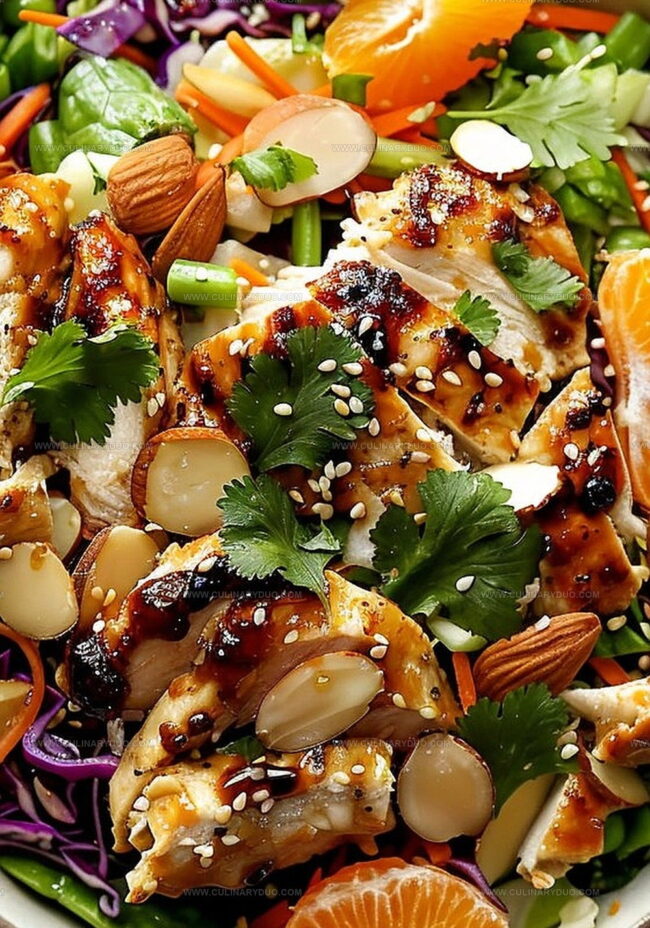 The combination of crisp vegetables, tender chicken, and zesty citrus creates a refreshing and vibrant dish that balances textures and flavors perfectly.