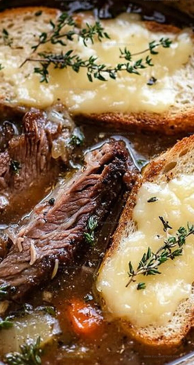 Comfort meets culinary magic in this savory french onion beef short rib soup that promises warmth and depth with every spoonful.