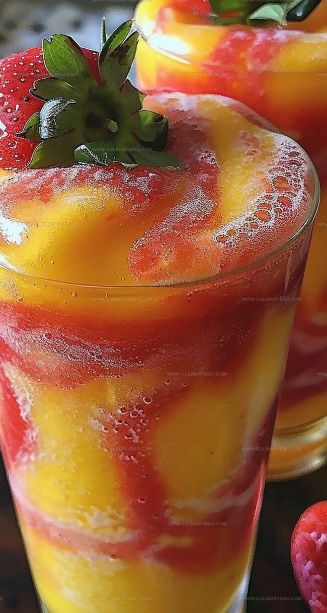 Cool summer afternoons demand a refreshing mango strawberry swirled slushies that burst with vibrant fruity flavors.