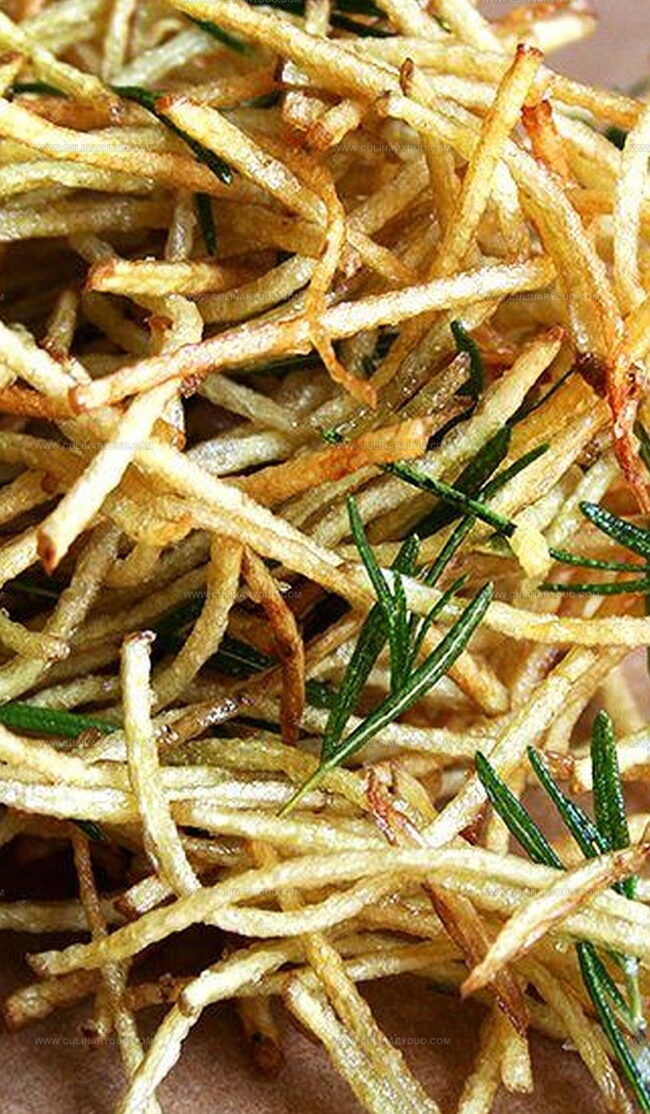 - Thoroughly dry potato julienne strips using paper towels to remove excess moisture and starch, which helps achieve maximum crispiness.