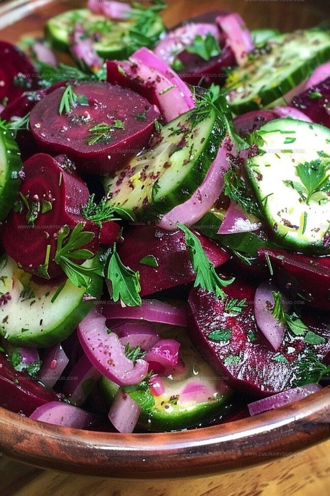 Earthy beetroots mingle with crisp cucumbers in this colorful recipe that promises a delightful crunch.