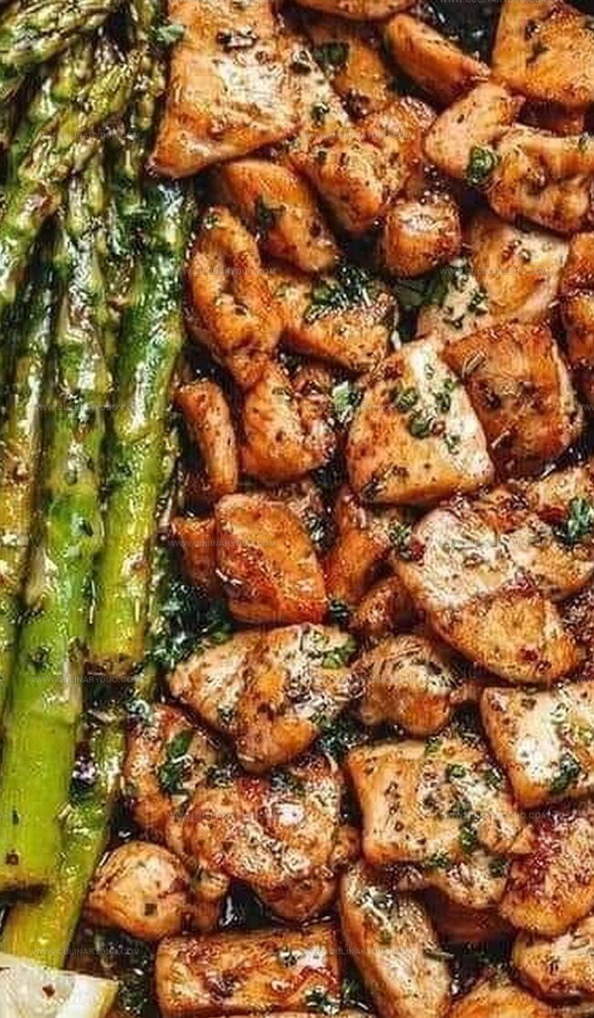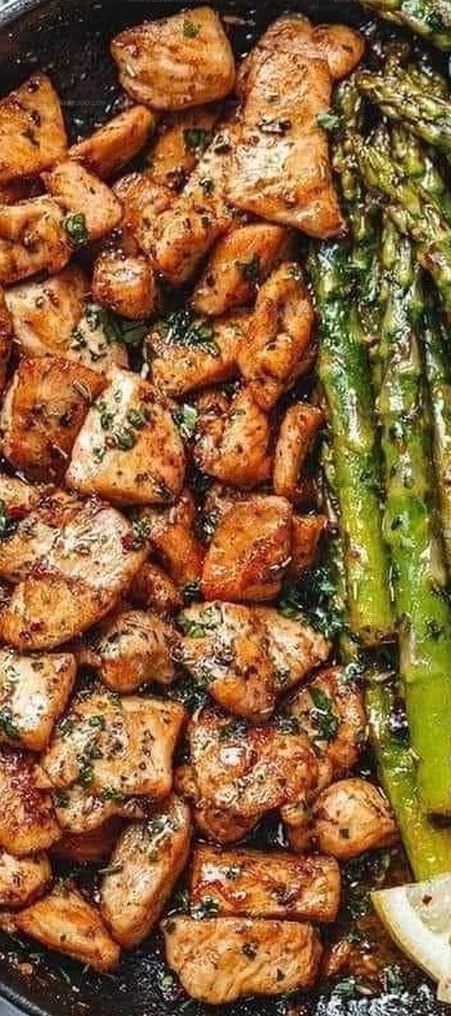 Zesty Garlic Butter Chicken Bites with Lemon Asparagus Recipe