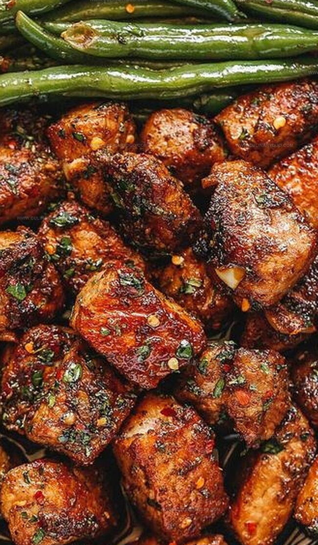 Succulent garlic butter pork bites elevate dinner with Mediterranean-inspired flavors, creating a simple yet sophisticated meal. Quick pan-searing locks in juices while crisp green beans provide perfect complementary freshness you’ll savor down to the last delicious bite.